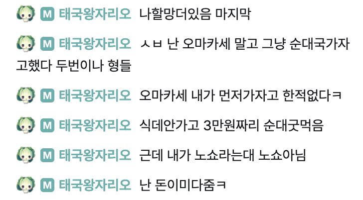 리오형 썩노쇼사건 채팅내역 [12]