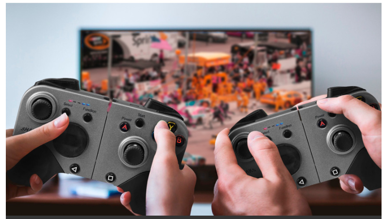 위의 사진의 컨트롤러 이며 특징은 아마 휴대용 컨트롤러중 몇개 없는 스마트폰을 가운대 착용 안할시 양옆의 컨트롤러 사이의 간격이 0cm까지 줄어서 딱 붙는 컨트롤러로 스마트폰 용도가 아니여도 노트북이나 PC방에 들고가서 쓸 수 있는 초소형 컨트롤러(유선 연결시 진동 지원)