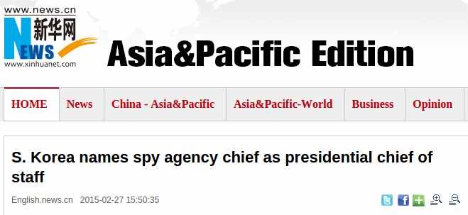 신화통신은 박 대통령은 새 국정원장에 이병호 전 국정원 2차장을 임명했으며 전직 기자와 세 명의 여당 국회의원을 각각 청와대 홍보수석과 청와대 정무특보에 임명했다는 소식을 전하며 기사를 마무리했다.