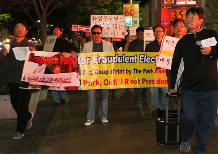 Korean Americans demanding to Oust illegitimate President Park & to Restore Democracy in Korea