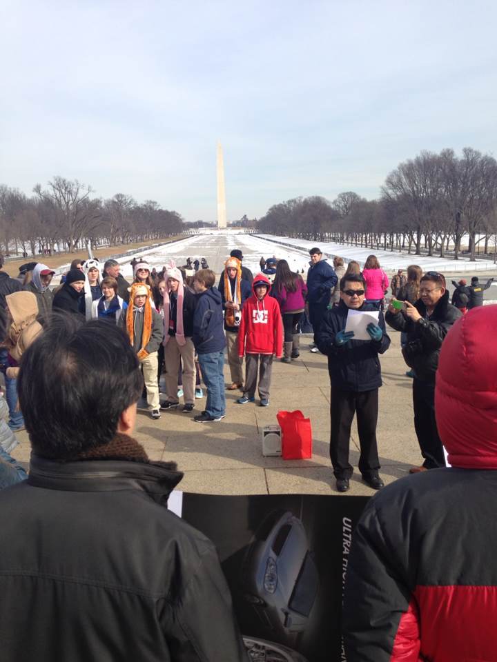 한시간 뒤인 오후 2시 워싱턴DC 링컨 기념관 앞에 모인 20여 명의 한인들도 ’재미 동포 공동성명서’를 낭독하고 시위를 하였으며, 주위의 시민들이 큰 관심을 보이기도 했다.