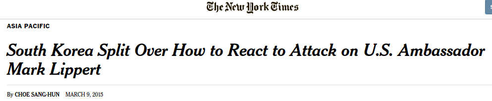뉴욕타임스, 리퍼트 미 대사 공격에 양분된 한국 반응 보도