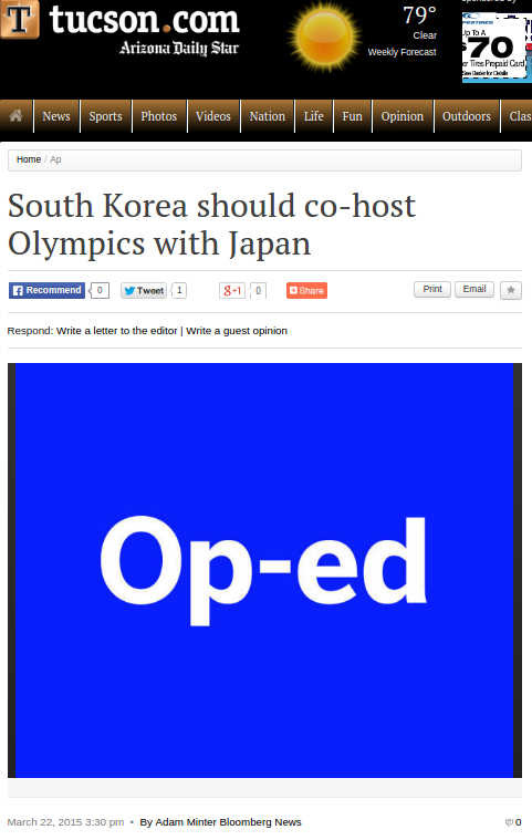 기사 바로가기 ☞ http://tucson.com/ap/commentary/south-korea-should-co-host-olympics-with-japan/article_9a9dc093-da14-5d0a-afc9-3201aea94356.html