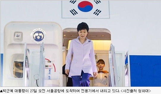 그런데 돌아와서 1~2일 동안 쉬어야 한다니, 그 시기가 묘하게 29일 재보선과 겹친다. 만약 새누리당이 재보선에서 승리하면, 예의 그 환한 미소로 국민들 앞에서 건재를 과시할 것인가? 역으로 새누리가 패배하면, 병가를 빌미로 또 다시 외국 순방에 나설 심산인가?