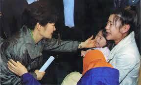 난데없이 박근혜의 사진 한 장이 논란이다. 문제의 사진은 박근혜가 세월호 참사 발생 다음날 가족을 잃고 우는 여자아이의 볼을 어루만지는 장면이 찍혀 있다. 이 사진은 지난 3월 사단법인 대한언론인회로부터 ‘제25회 신문사진 인간애상’ 대상으로 선정됐다. 사진 내용만 보면 큰 문제 없다. 국가원수가 참사로 아파하는 모녀의 아픔을 위로하는 장면은 더할 나위 없이 극적이기 때문이다. 더구나 국가원수가 여성이라는 점은 극적 요소를 더해준다.