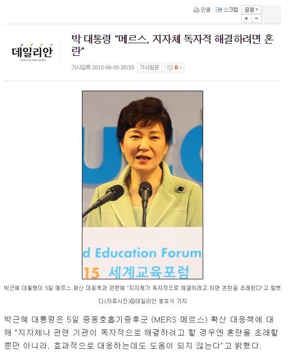 '메르스 바이러스' 관련한만큼은 정부가 좀 잘 못 한 거 같다