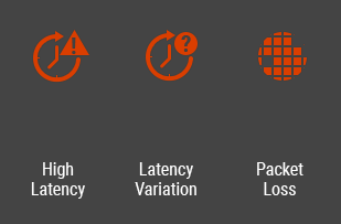 o높은 지연(High latency), 지연 변동(Latency variation), 패킷 손실(Packet loss) 세 가지 상황을 아이콘으로 나타냅니다.
