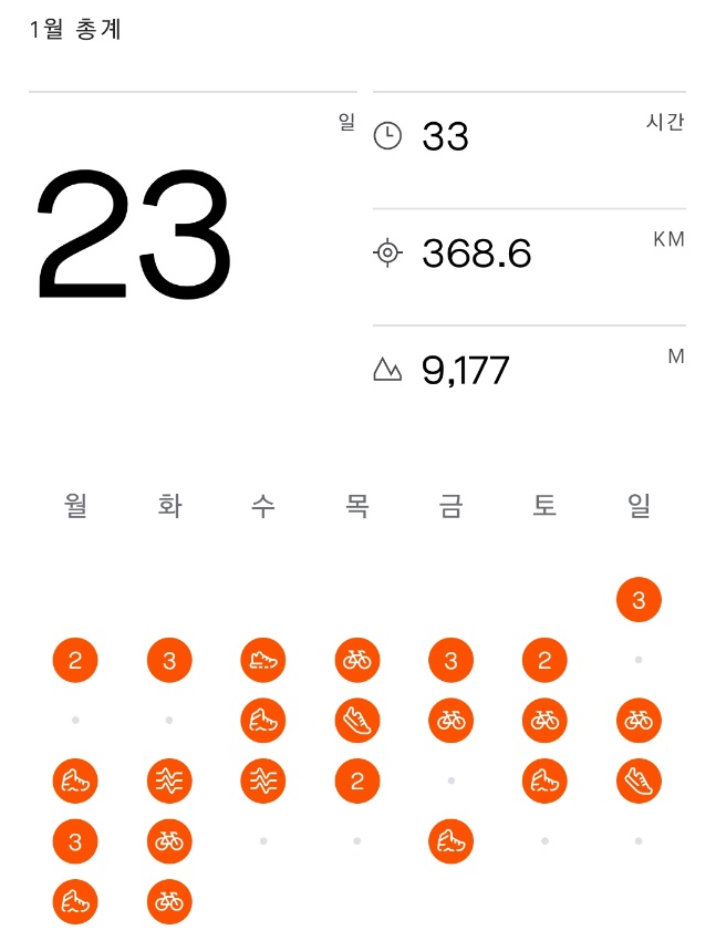 원래 암벽등반 10회 하기가 초기 목표였는데 병원에서 오른손목 삼각섬유연골복합체 손상을 진단받아서 당분간 손목에 과부하가 많이 오는 운동은 못할 것 같다. 그래서 내년 하프마라톤 준비도 할 겸 달리기 120km로 목표를 바꾸었다. 달리기도 나같은 과체중은 사실 관절에 무리가 가기 때문에 여태까지 못했는데, 1월에 시험 삼아 2번 정도 뛰어보니 크게 무리가 없는 거 같아서 슬슬 뛰어도 괜찮을것 같다. 달리기는 자전거와 함께 내가 가장 좋아했던 운동 중 하나라서 기대가 된다.
